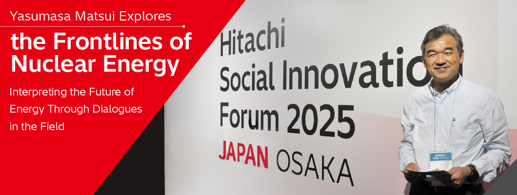 Freelance announcer and journalist Yasumasa Matsui visited HSIF2025 JAPAN, OSAKA and Expo 2025 Osaka, Kansai to cover the energy sector-related exhibitions and sessions at the forum and the experience-based exhibitions at the expo pavilion. This report is presented as an extra edition of the Energy Highlights special feature, “Yasumasa Matsui Explores the Frontlines of Nuclear Energy: Interpreting the Future of Energy Through Dialogues in the Field.” What did Matsui think of Hitachi’s initiatives?