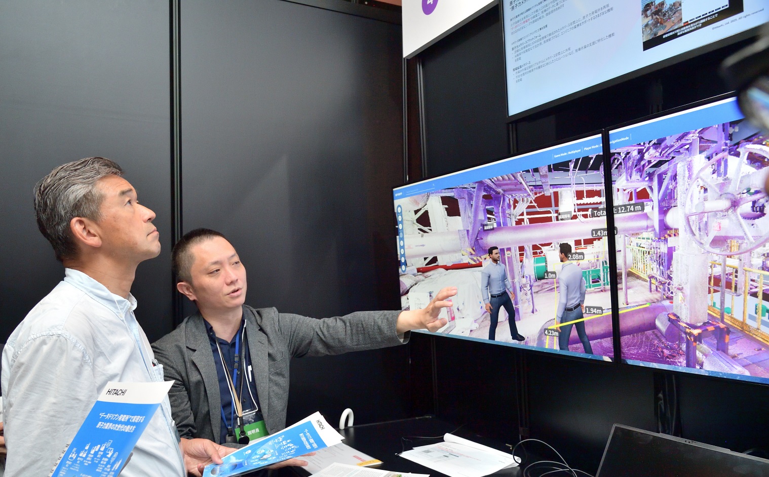 The theme of the nuclear energy exhibition, “One Hitachi”, implies that Hitachi aims to create value that supports a sustainable society by strengthening the cooperation between its nuclear energy divisions and the other business sectors of the Hitachi Group centered on Lumada 3.0, built on the evolution of the Lumada digital innovation business, using AI and domain knowledge (on-site implicit knowledge and knowhow).