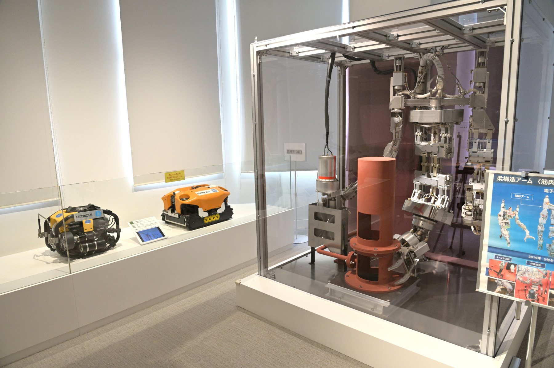 The Decommissioning Archive Center also has Hitachi's submersible swimming robot and submersible crawling robot which were used to investigate fuel debris on display, among other innovations.
