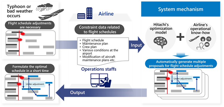 - By combining All Nippon Airways' operational expertise with Hitachi's planning optimization technology, the partners developed and began operating the system in July.